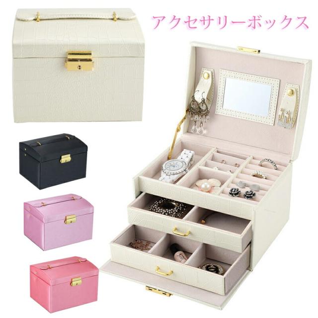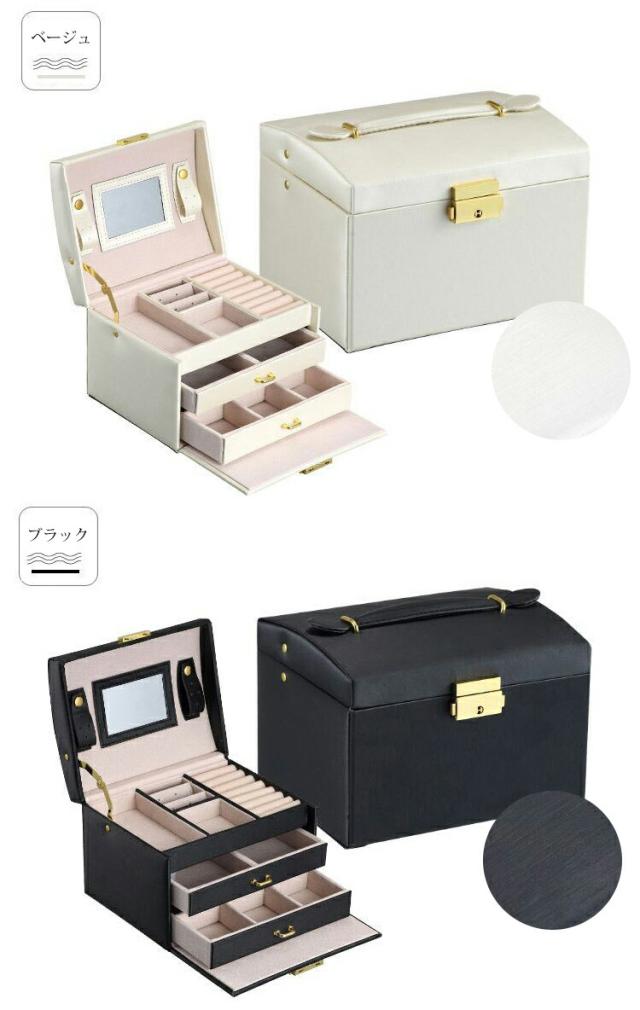 ジュエリーケース アクセサリーケース アクセサリー収納 大容量 メイクボックス 鏡 鍵付き PUレザー 宝石箱 コンパクト
