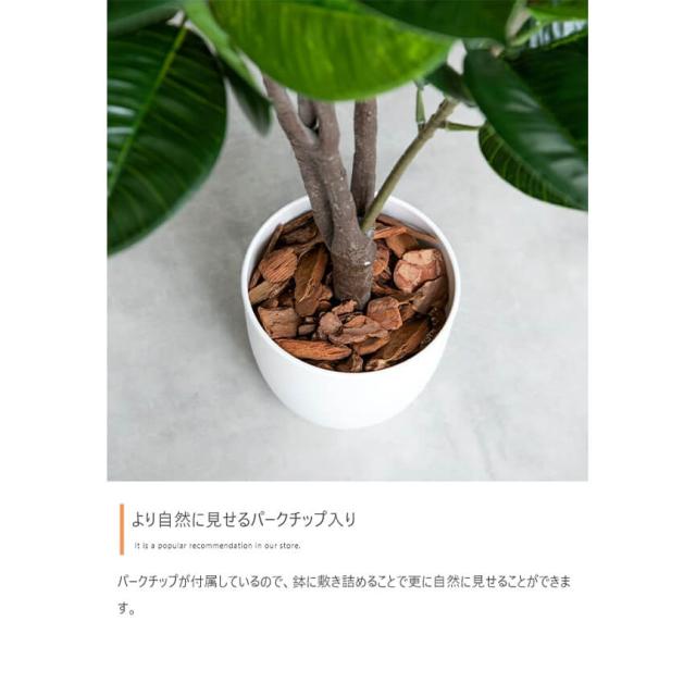 葉は薄く、透かして見ると美しい葉脈が楽しめます。フォーマルな場でも使われることが多く、オフィスやワークスペースの緑化にも相性抜群です。また、幹には天然木を使用しており、リアルな質感を再現しています。