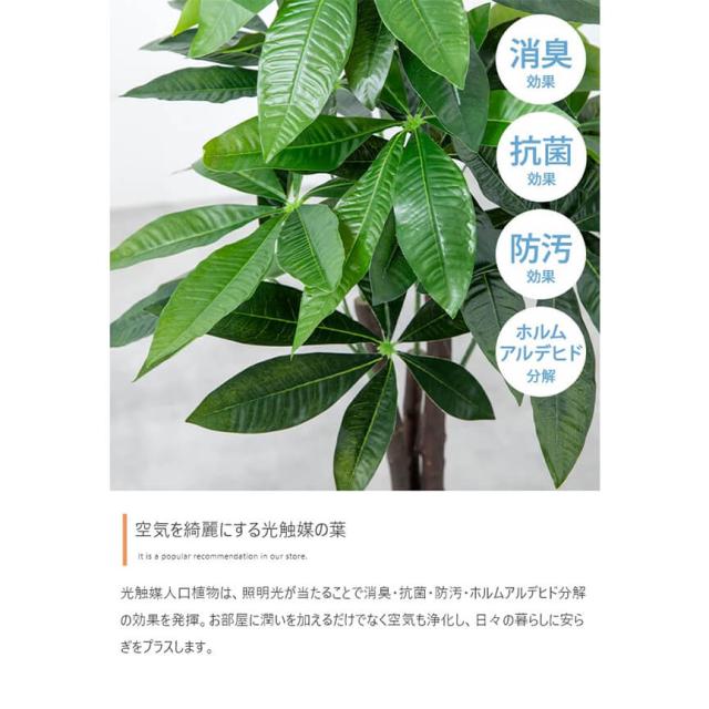 光触媒人口植物は、照明光が当たることで消臭・抗菌・防汚・ホルムアルデヒド分解の効果を発揮。お部屋に潤いを加えるだけでなく空気も浄化し、日々の暮らしに安らぎをプラスします。