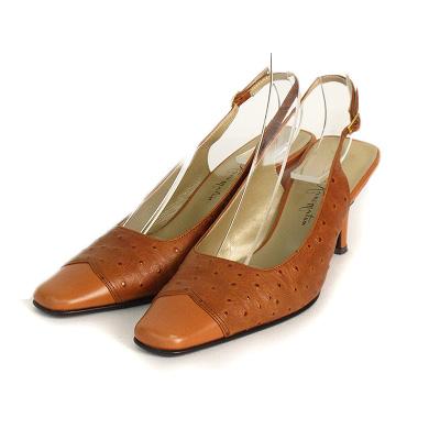 【中古】WASHINGTON 銀座ワシントン パンプス スクエアトゥ バックストラップ レザー 23 茶 ブラウン レディース