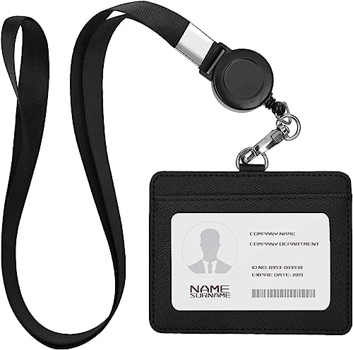 Furifer IDカードホルダー ネームホルダー 伸縮リール式 名札ホルダー 社員証 idカードケース PU革 横型 両面用 カードホルダー
