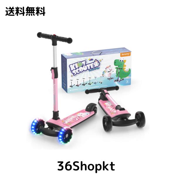 besrey キッズスクーター キックスクーター キックボード 三輪車 子供用 幼児用 3輪 3in1 3階段調節可能 後輪ブレーキ 高さ調整可能 光る