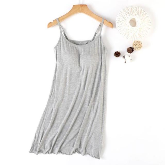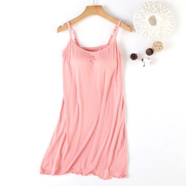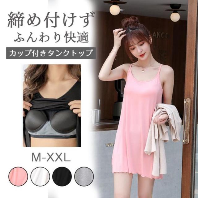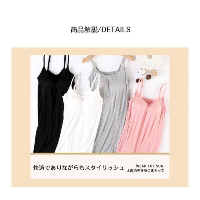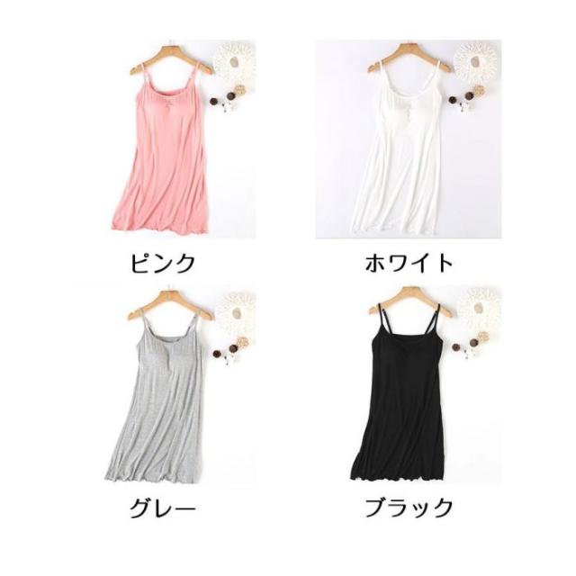インナーレディース【キャミソール カップ付き】キャミソールワンピース春夏モダールストレッチミディアム丈ミモレ丈締めつけない吸汗速乾肌着インナー下着