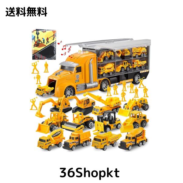 【大人気な建設車両おもちゃセット登場!】大きい音楽収納車X 1、ミニカーセットX 12 、80X70CMマップX 1、ABS製ミニ建筑労働者X 12、高品質合金とABSから作っています。安全な素材で、壊しにくいし長持ちになります。
