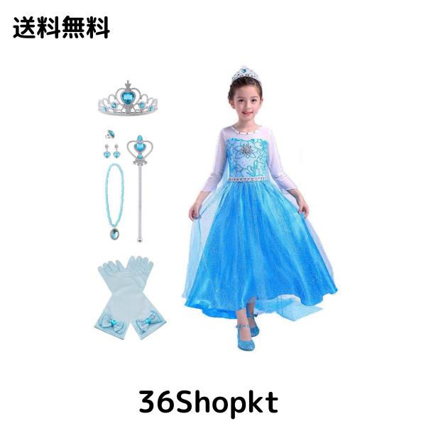 [YITING] エルサ ドレス 子供 プリンセスドレス 水色 ブルー コスチューム アナ雪エルサ ドレス 豪華7点セット (プリンセスドレス, ハー