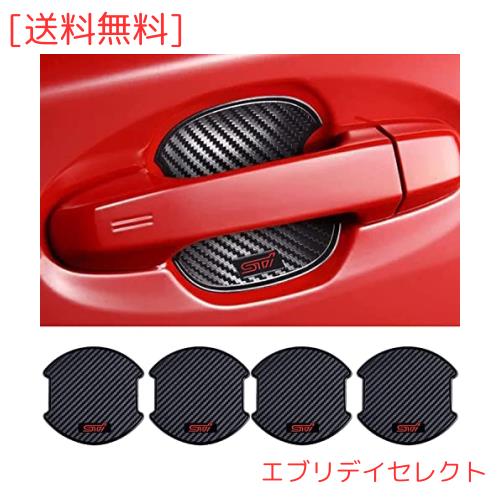 ◆商品名:ドアハンドルプロテクター STI スバル 車用 カーボン ドアノブ ガード 傷防止 4枚入り (L, スバル)