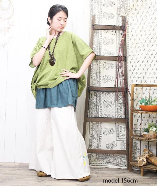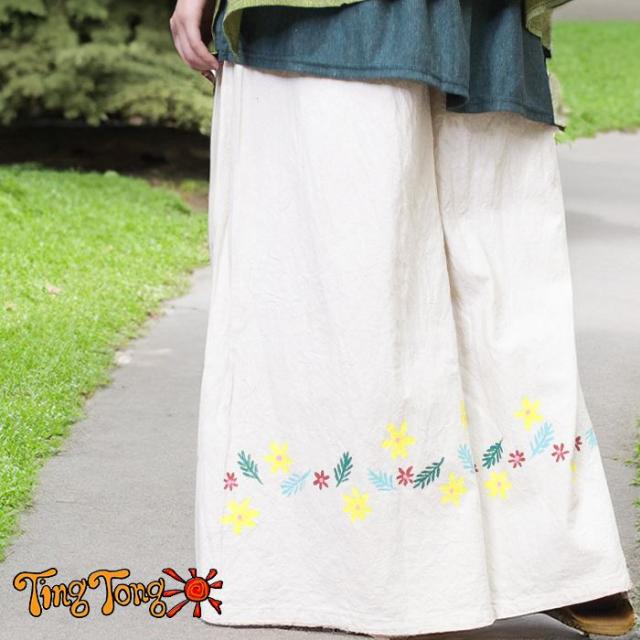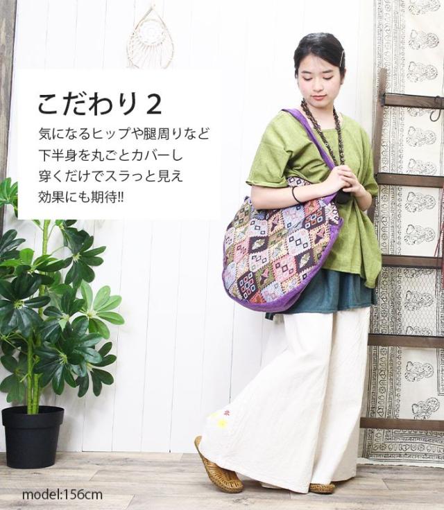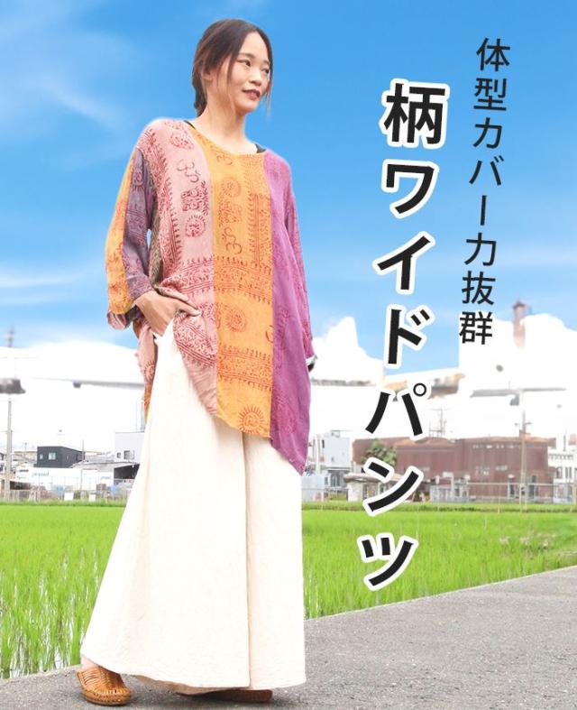 ワイドパンツ イージー フレア バギー スカーチョ ! ナチュラルコットン ハンドペイント レディース 女性 白 夏 2025年春夏