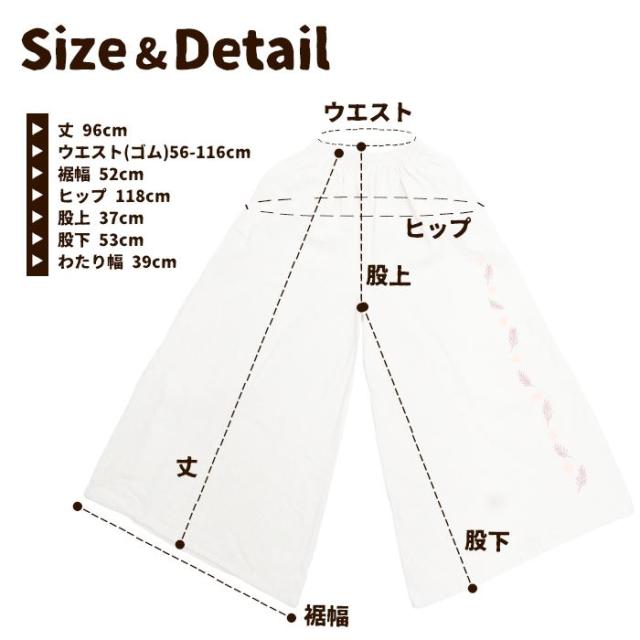 丈 96cm ウエスト (ゴム)56-116cm 裾幅 52cm ヒップ 118cm 股上 37cm 股下 53cm わたり幅 39cm