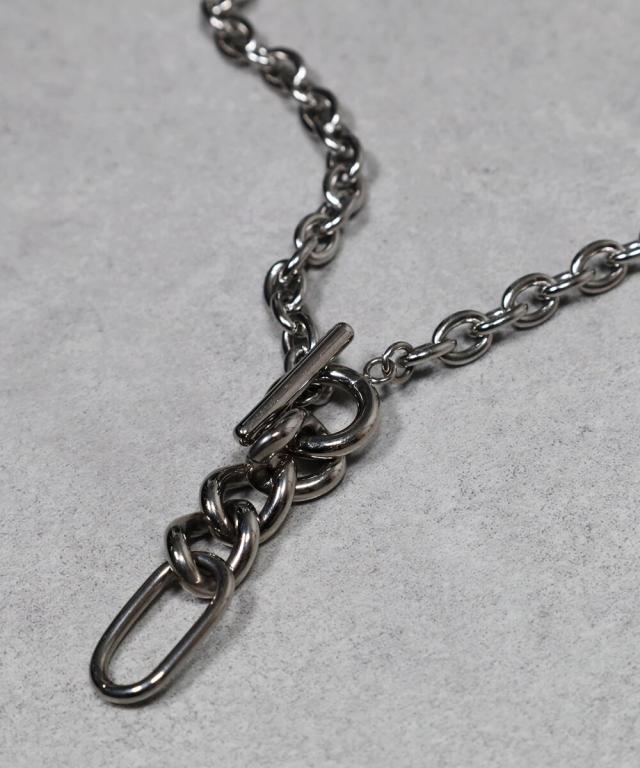 LHME ボリュームY字ミックスチェーンネックレス/シルバー/サージカルステンレス金属アレルギー対応