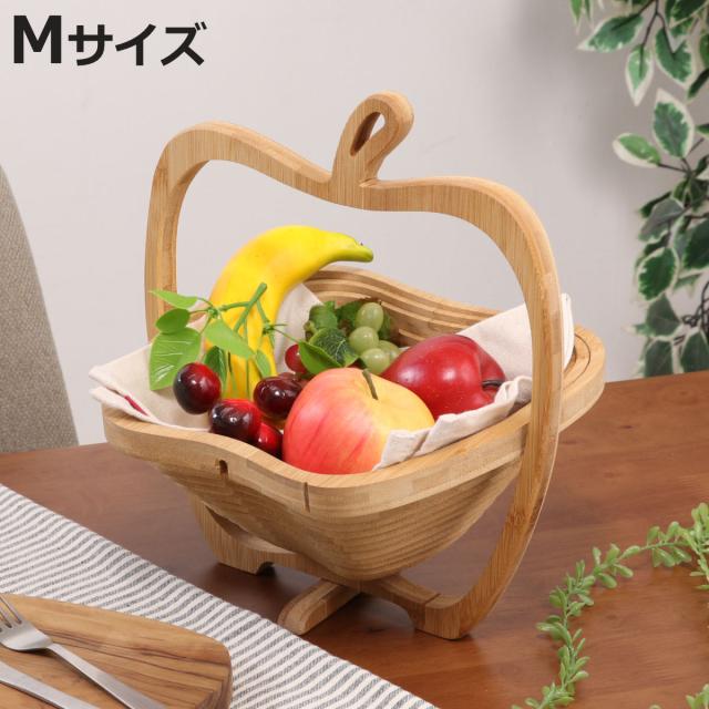 キッチンバスケット りんごバスケット M ( バスケット フルーツバスケット 木製 竹 小物収納 小物入れ 鍋敷き かご 食卓 フルーツ お菓子 果物入れ カゴ テーブル カウンター りんご型 かわいい おしゃれ 収納 整理 )