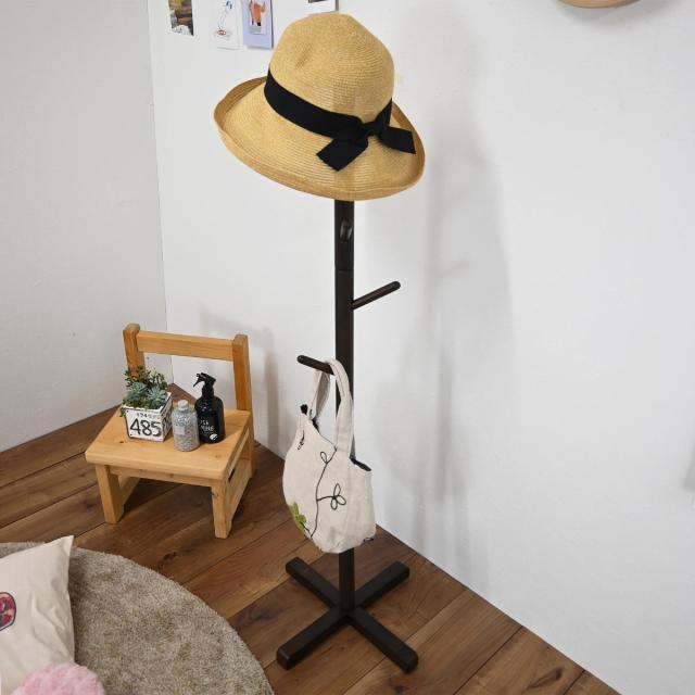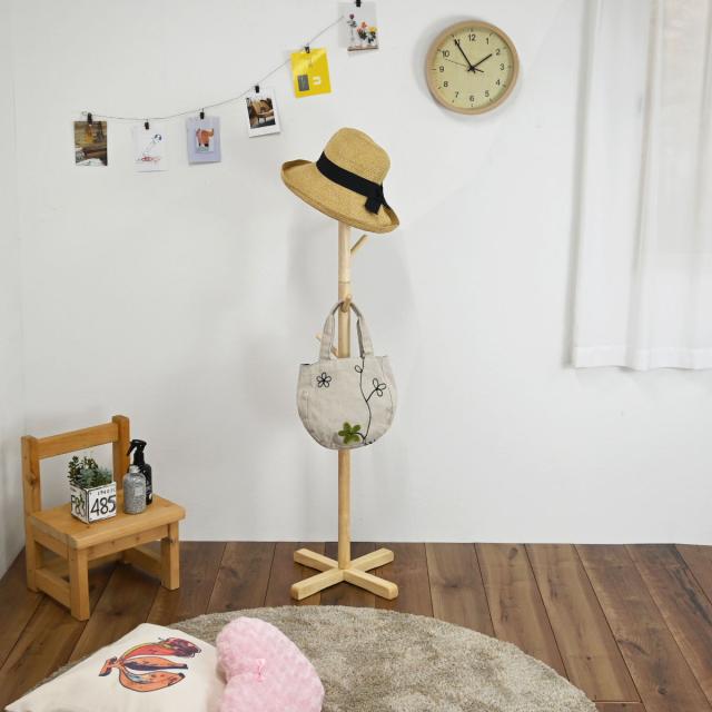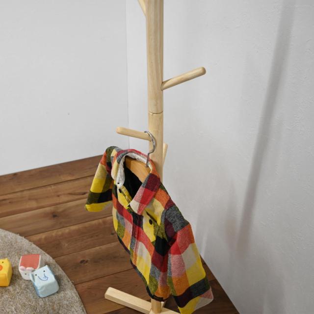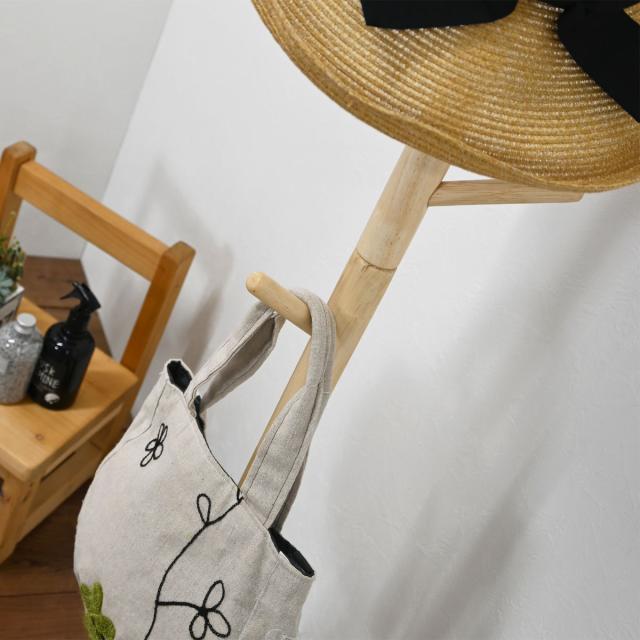 天然木を使用した、優しく温かみのある雰囲気のポールハンガーです。玄関やお部屋でお出かけグッズをさっとまとめて掛けておけて便利です。