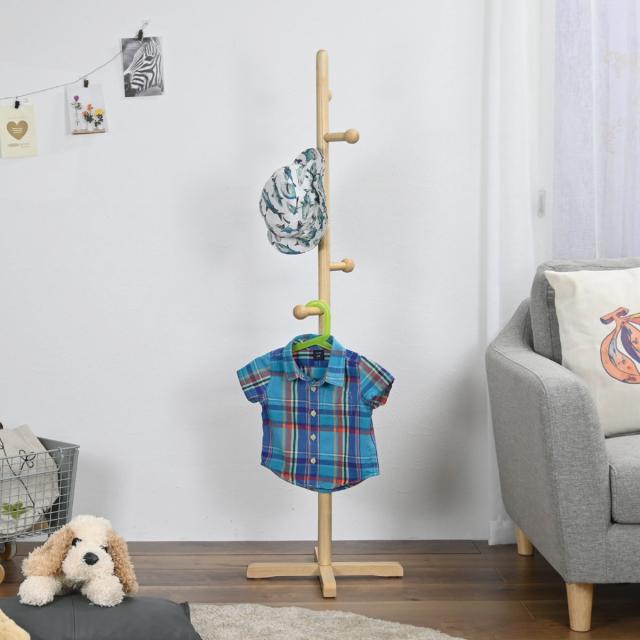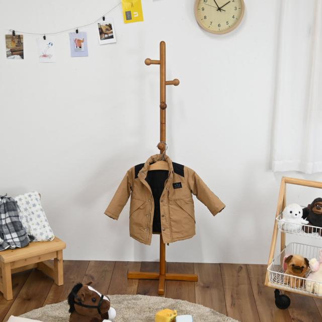 ポールハンガー 木製 子供 ( ハンガーラック コートハンガー 収納 天然木 高さ124cm 洋服掛け コート掛け ポールスタンド 子ども 軽量 玄関 リビング 掛ける 帽子 かばん ハンガーポール おしゃれ バッグ 玄関収納 )