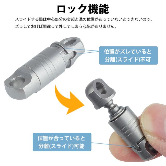 スライドする際は中心部分の突起と溝の位置があっていないとできないので、ズラしておけば間違って外してしまう心配がありません。