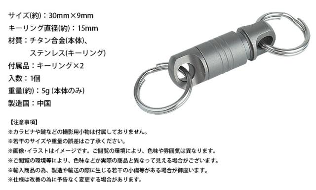 キーホルダー キーリング チタン合金製 分離型 着脱式 軽量 小型 軽量 アウトドア 鍵 カギ 持ち運び 取り外し便利 簡単分離