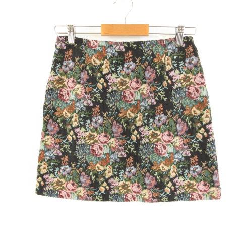 【中古】ジーユー GU ミニスカート 台形 花柄 黒 L *T959 レディース