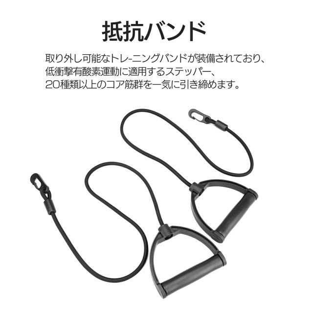 【取り外し可能な抵抗バンド付き】本体に取り付けられた抵抗バンドは、上半身の筋力トレーニングに役立ちます。肩や腕、胸筋を効果的に鍛えることができるため、全身のフィットネスを目指す方に最適です。バンドは簡単に取り外し可能で、使用しないときはコンパクトに収納できます。