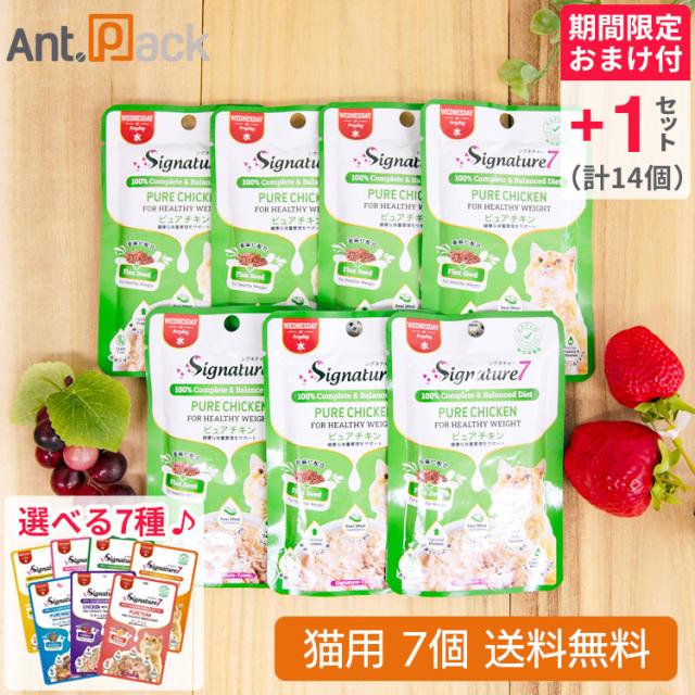 【選べる7種おまけ付き】シグネチャー7パウチ ピュアチキン 水 猫用 50g×7個 + おまけ1セット(7個)