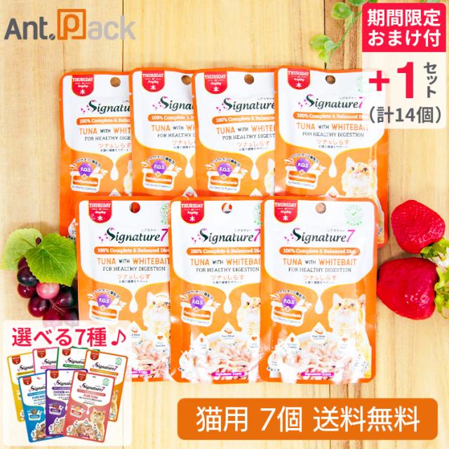 (選べる7種おまけ付き) シグネチャー7パウチ ツナ&しらす 木 猫用 50g×7個 + おまけ1セット(7個)