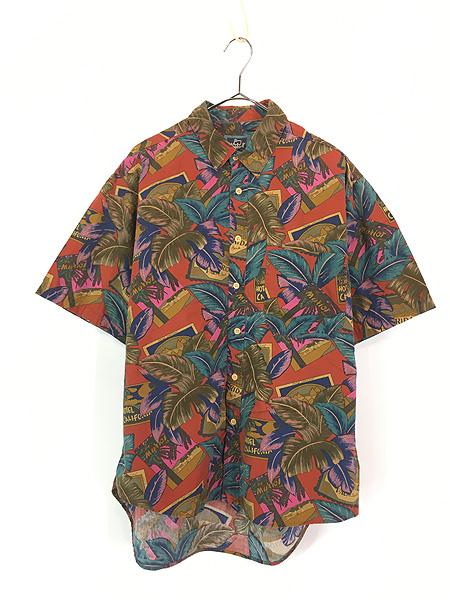 古着 90s WoolRich 「Hotel California」 ホテル ヤシの木 アート 半袖 コットン シャツ L