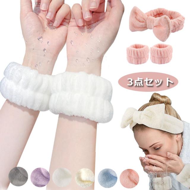 リストバンド 洗顔 ヘアバンド 3点セット ヘッドバンド 蝶結び リストバンド 吸水 袖濡れ防止 服濡れ防止 女性用 洗顔 SPA 洗顔リストバンド かわいい 吸水タオル 髪 洗う お風呂上がり メイ