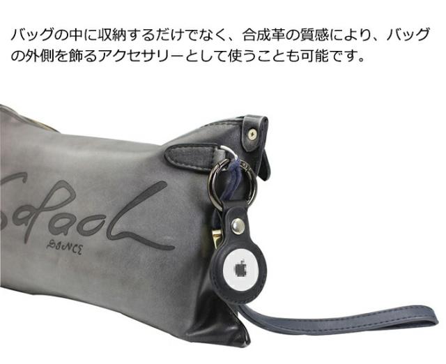バッグの中に収納するだけでなく、合成革の質感により、バッグの外側を飾るアクセサリーとして使うことも可能です。