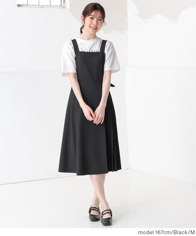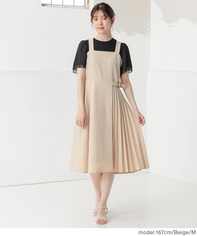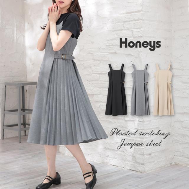 ワンピース ノースリーブ ロング丈 小さいサイズ 大きいサイズ オールシーズン 春 レディース Honeys ハニーズ プリーツ切替ジャンスカ