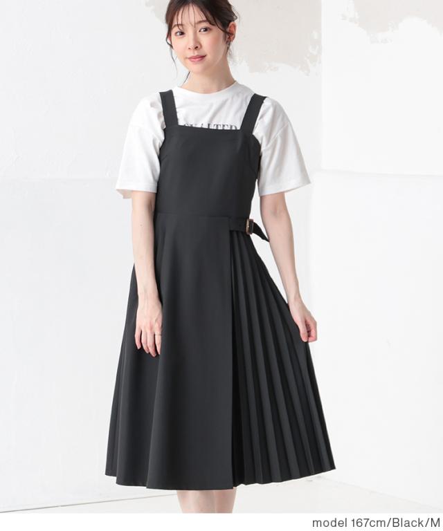動くたびにふんわり揺れるサイドプリーツがフェミニンなデザイン。