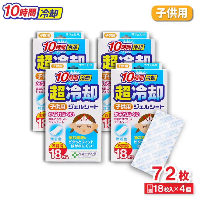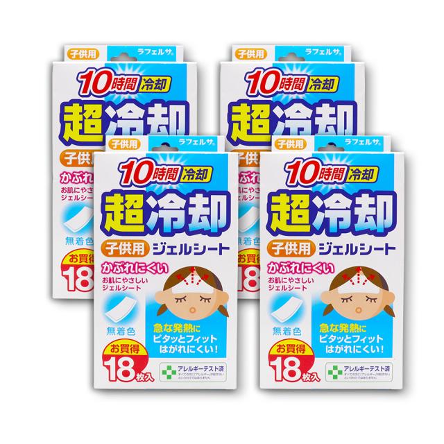 冷却シート 子供用 18枚入 ×4個 無着色 10時間冷却 超冷却ジェルシート お買得 ラフェルサ