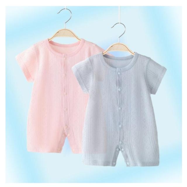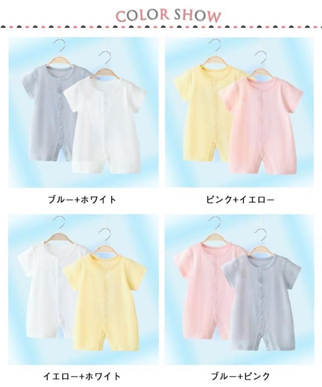 ベビー服 2枚セット!ロンパース 薄手 カバーオール キッズ服 前開き ボディスーツ 2枚セット!ロンパース メッシュ 肌着 通気性 女の子 新生児 インナー パジャマ 赤ちゃん 幼児 男の子 半袖 夏服 退院着 出産祝い お洒落
