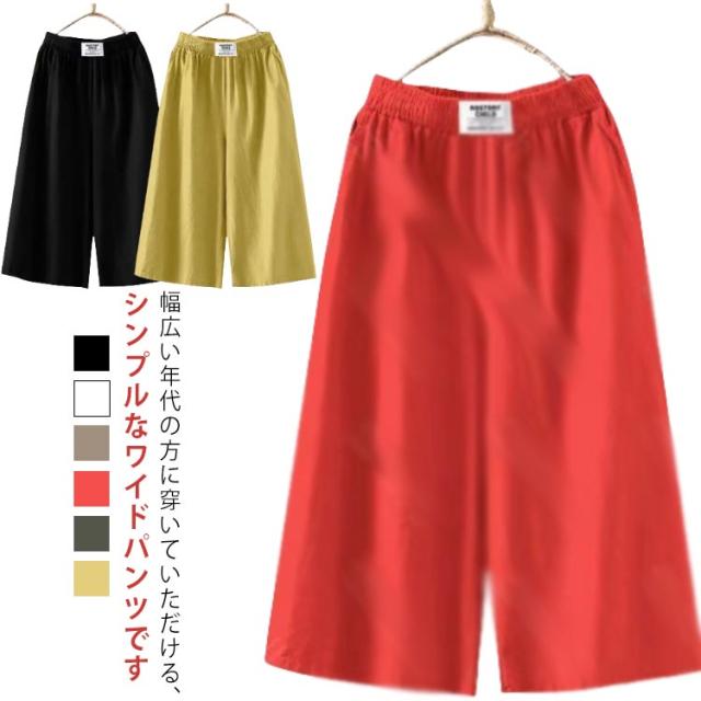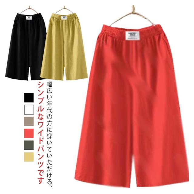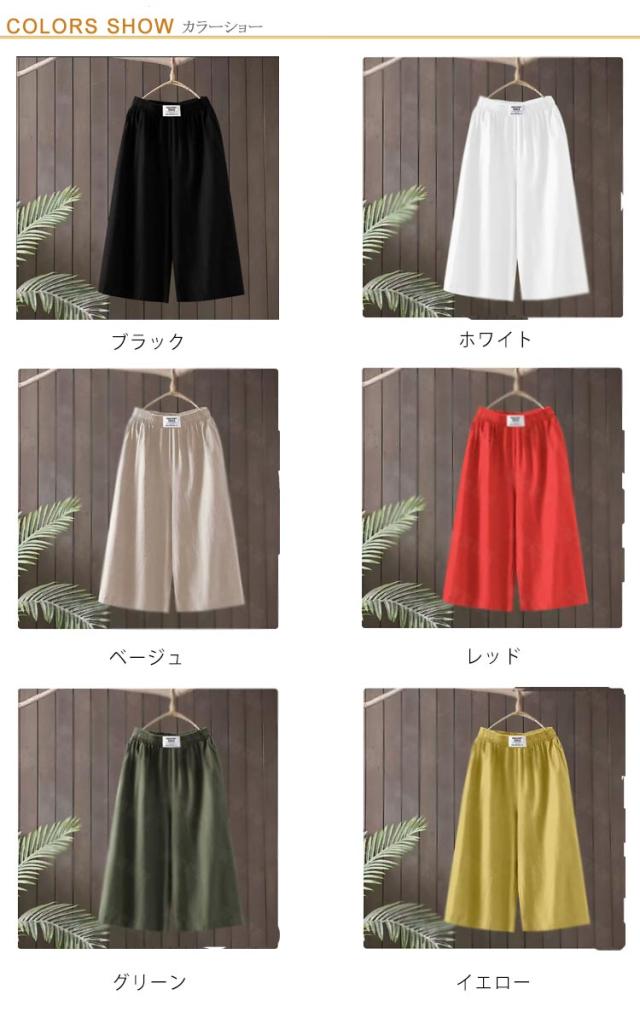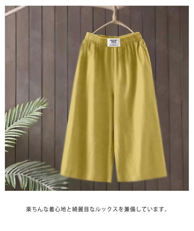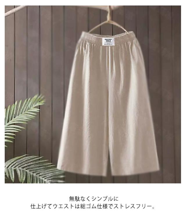 ゆったり パンツ 7分丈 ワイド スカーチョ リネン イージーワイドパンツ 綿麻 ガウチョパンツ 涼しい 体型カバー イージーパンツ 夏 スカンツ ウェストゴム レディース きれいめ リネン 大きいサイズ お洒落