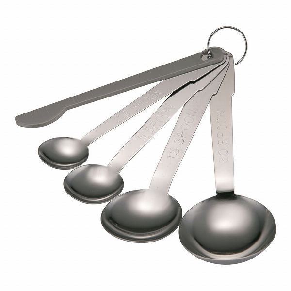 18-0計量スプーン PCヘラ付 入数:1セット(4本組) 172(BKI17004) 計量スプーン メジャースプーン 計りスプーン 計量 大さじ 大匙 小さじ 小匙 ステンレス セット 4本セット ヘラ付き ヘラ付 ヘラ へら 2.5cc 5cc 15cc 30cc