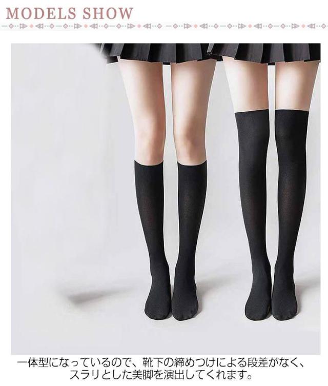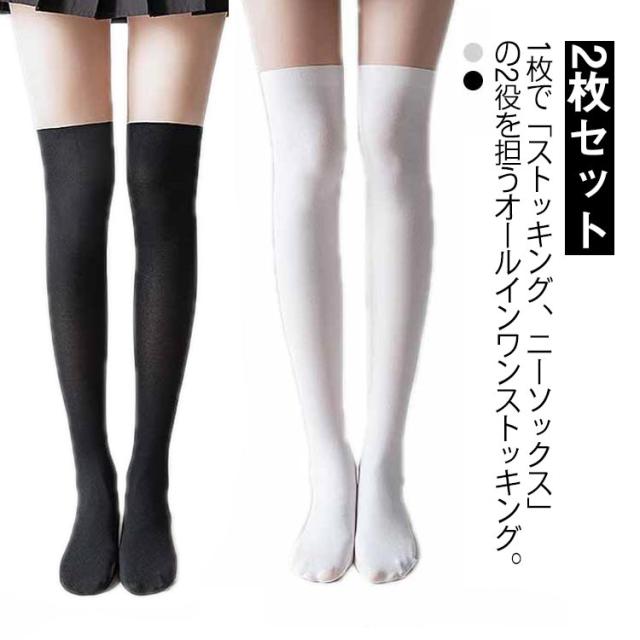 | 1枚で「ストッキング、ニーソックス」の2役を担うオールインワンストッキング。 2枚セット 一体型になっているので、靴下の締めつけによる段差がなく、スラリとした美脚を演出してくれます。 UVカット率が99.9%で、最大12時間紫外線から肌を守ります。 ニーハイとハイソックスの2種類あるのでボトムスにあわせて使い分けできます。 機能的なので、ゴルフなどのスポーツはもちろん、普段着、演劇の舞台衣装、ハロウィンの仮装…など、さまざまなシーンでお使い頂けます。 | |