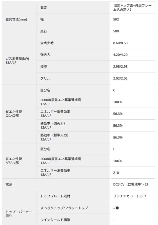 パロマ エブリシェフガステーブル