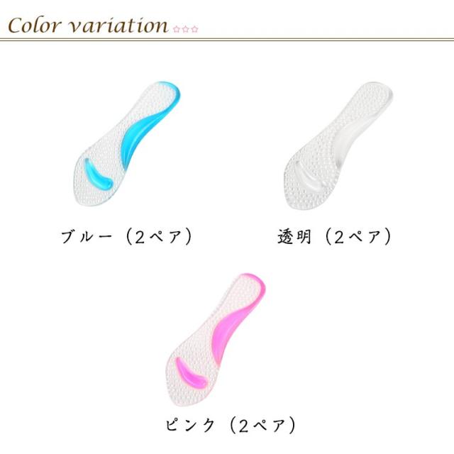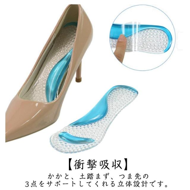 ジェル 2ペア 中敷き インソール つま先滑り止め レディース シリコン クッションインソール ハイヒール 低反発 土踏まずサポーター クリア 2ペア 滑り止め 靴ずれ防止 衝撃吸収 疲れない 粘着式 足サポート 汚れ防止
