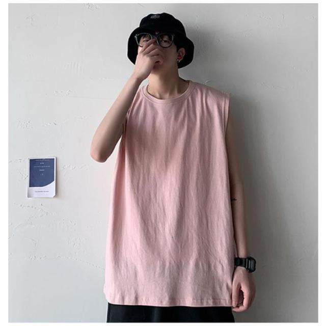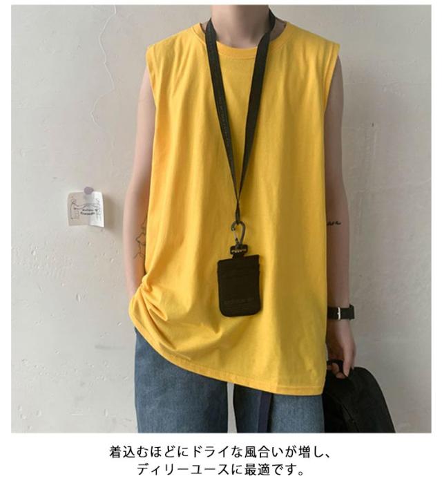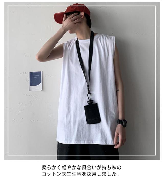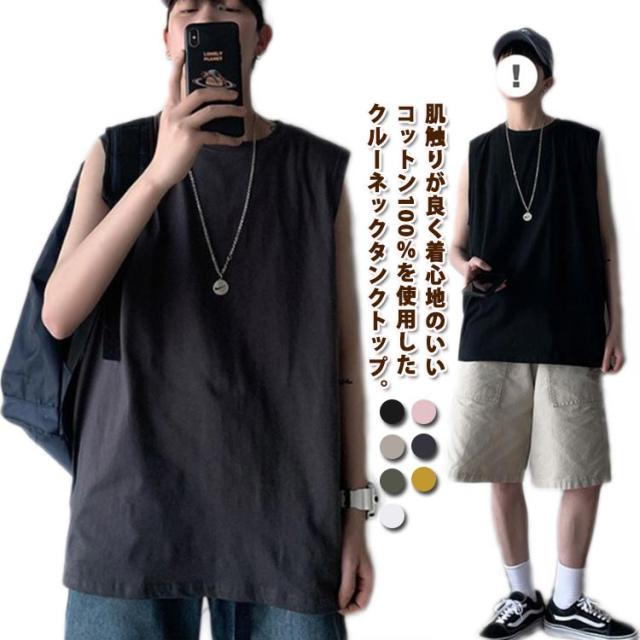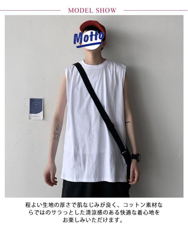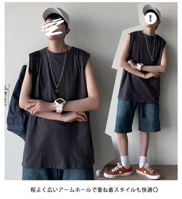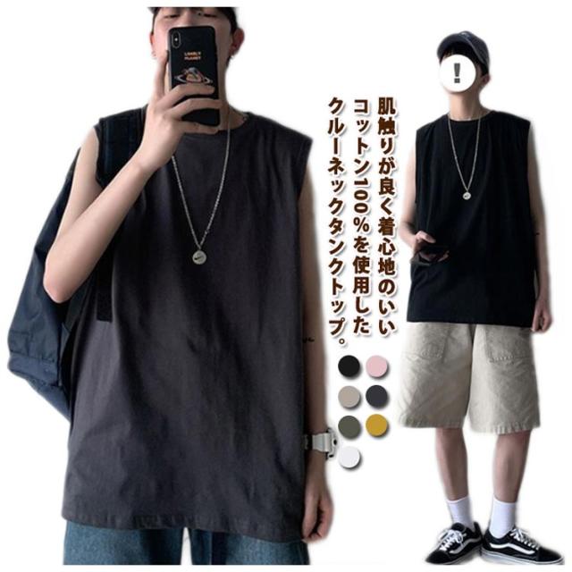 ゆったり 春 韓国 tシャツ サマー タンクトップ メンズ シンプル ロング丈 L ノースリーブ 夏 綿100% カットソー オーバーサイズ 無地 インナー 袖なし カジュアル ストリート クルーネック ベスト 男性 綿100% M 5XL XL 2XL 3XL 4XL 薄手 カーキ 黒 白