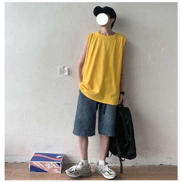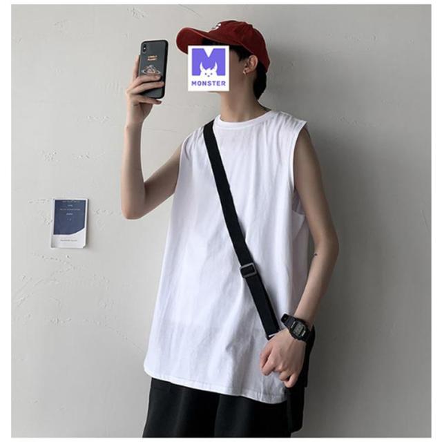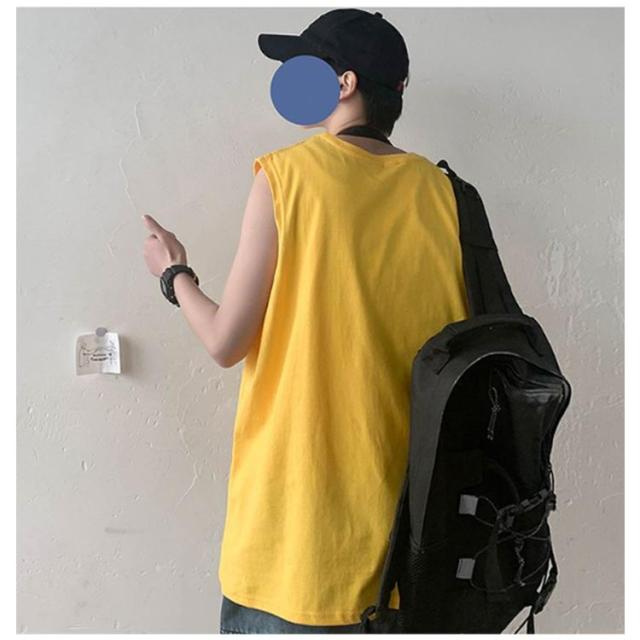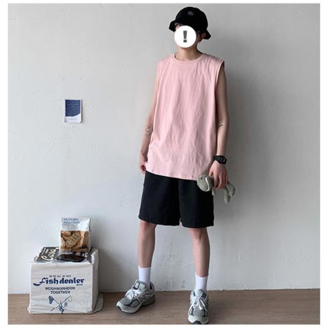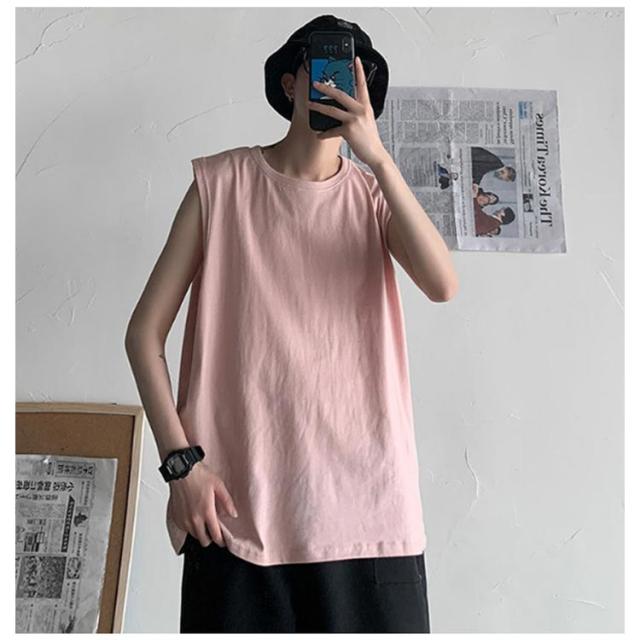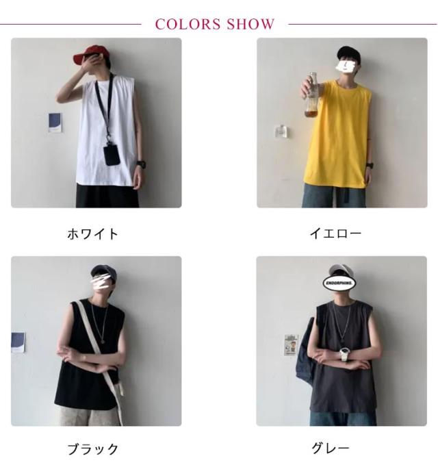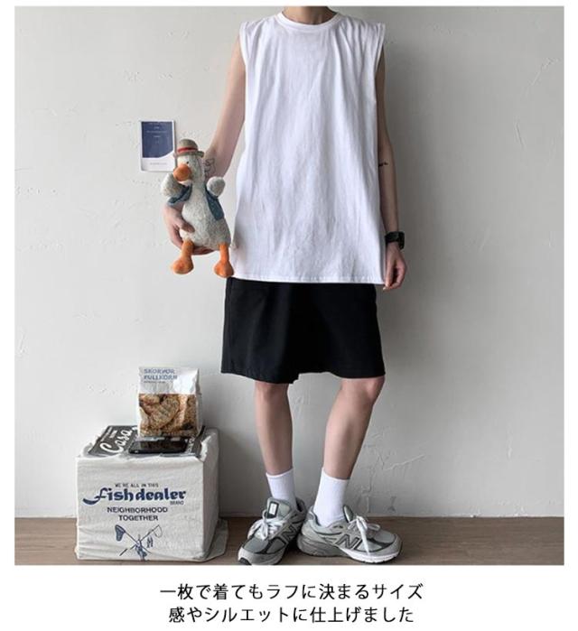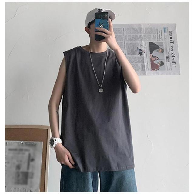 ゆったり 春 韓国 tシャツ サマー タンクトップ メンズ シンプル ロング丈 L ノースリーブ 夏 綿100% カットソー オーバーサイズ 無地 インナー 袖なし カジュアル ストリート クルーネック ベスト 男性 綿100% M 5XL XL 2XL 3XL 4XL 薄手 カーキ 黒 白