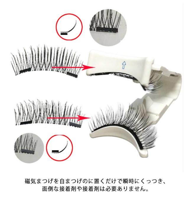 | 自まつげに置くだけで瞬時にくっつき、マグネット式つけまつげ。【ナチュラルタイプ&濃密タイプ】 超軽量で快適な高級合成繊維で作られており、束感、軽くて、薄くて、やわらかく、しなやかなつけ心地で、装着時の異物感がなく、明るく自然な仕上がりです。 磁気まつげを自まつげのに置くだけで瞬時にくっつき、面倒な接着剤や接着剤は必要ありません。 ●自まつ毛を傷つけない挟まなくていい、マグネット式つけまつげ●初心者でも簡単に装着可能●プロも驚くボリューム感 ●どんな目の形にもフィット ●長持ち&繰り返し使える ●接着剤なしの新しくなった強力磁気 | |