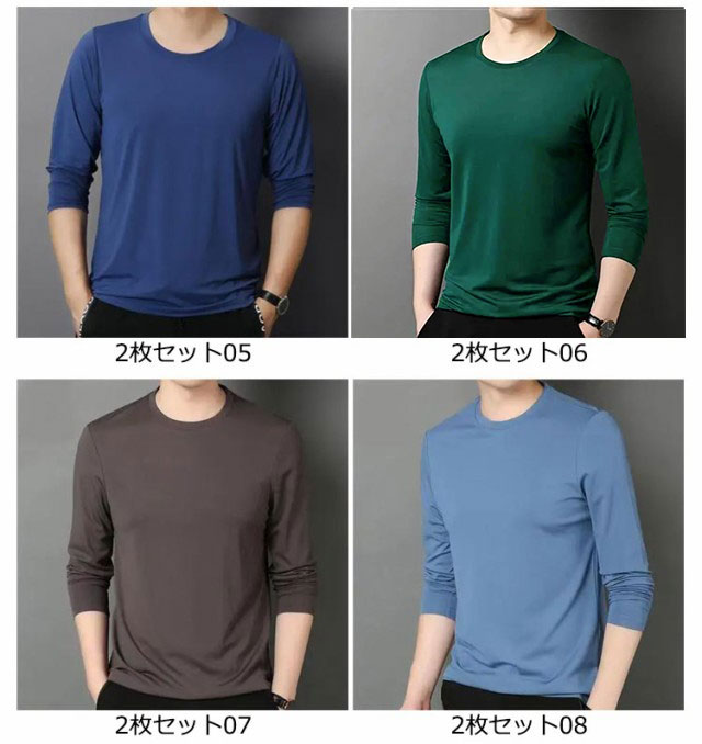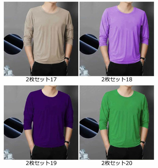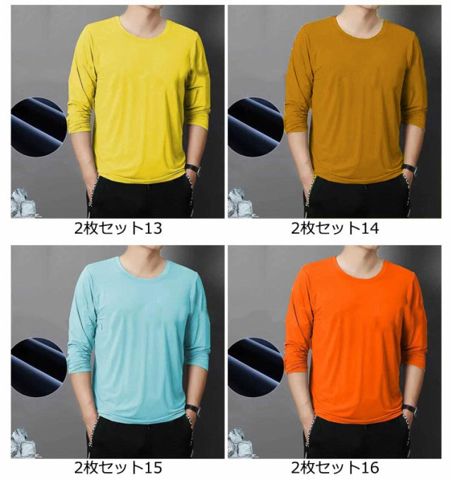 2枚セット インナーシャツ 夏 トップス tシャツ 涼しい 丸首 薄手 スポーツ アイスシルク 長袖tシャツ 吸水速乾 接触冷感 ストレッチ 長袖 Tシャツ インナーシャツ 作業服 作業着 トレーニングウェア ゴルフ 野球 大きいサイズ バイク 釣り キャンプ メンズ