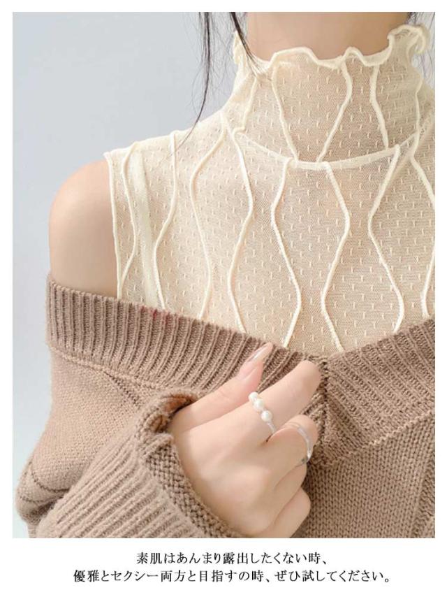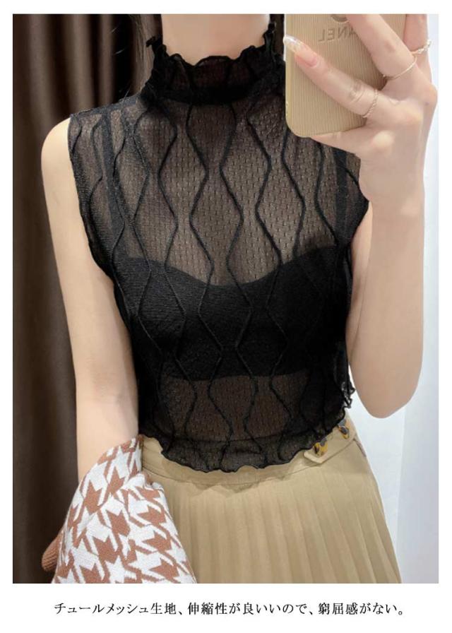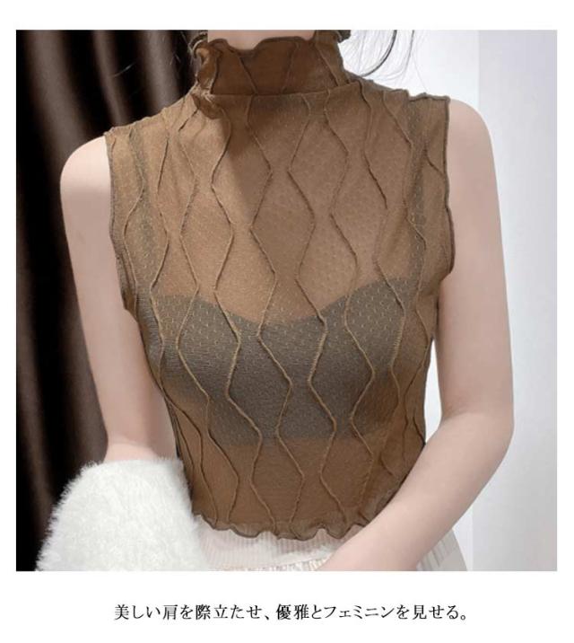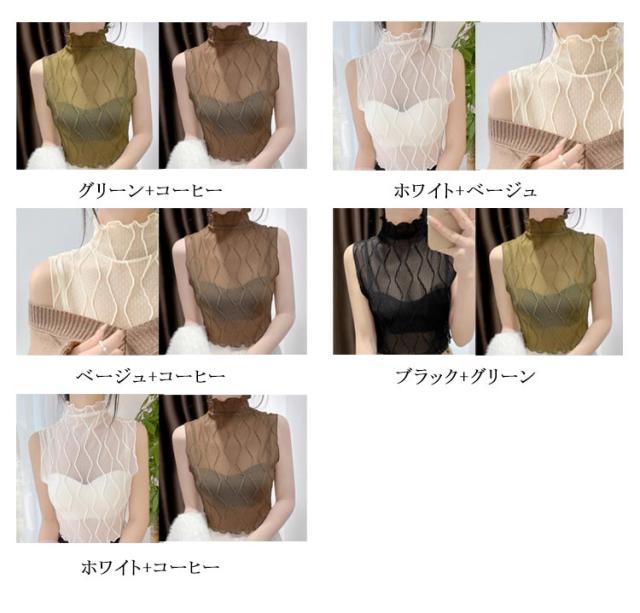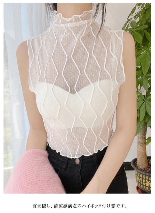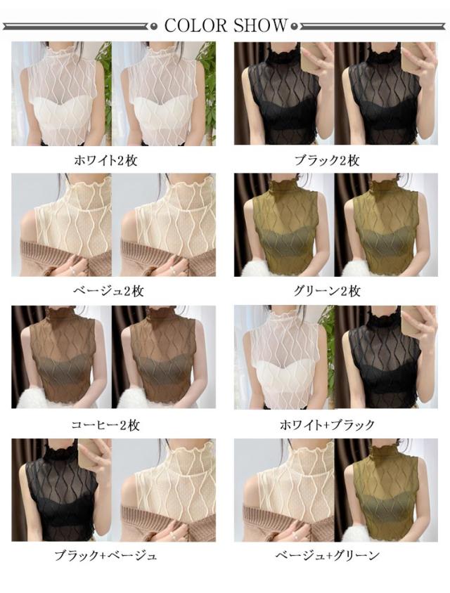 ハイネック 春夏 付け襟 シアー メッシュ 秋冬 首元綺麗 タートルネック インナー 偽の襟 セクシー 2枚セット!つけ襟 レディース ノースリーブ チラ見せ タンクトップ レイヤード 重ね着 トップス 透け感 おしゃれ レース