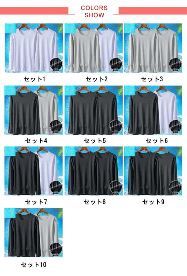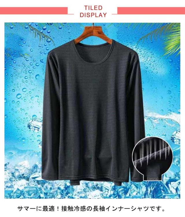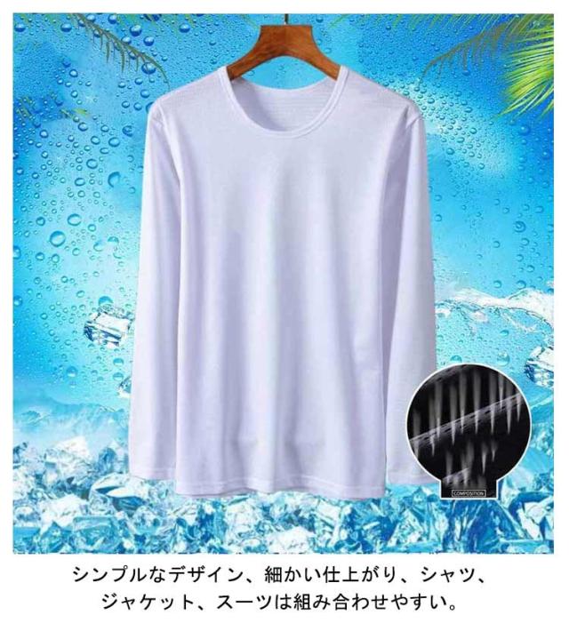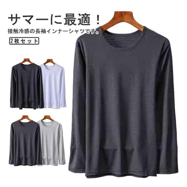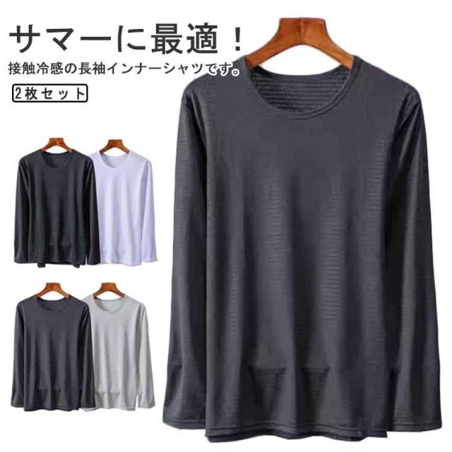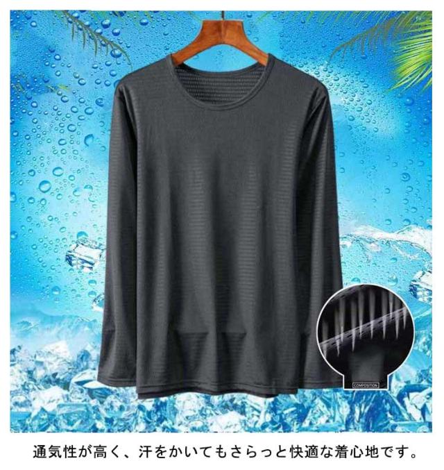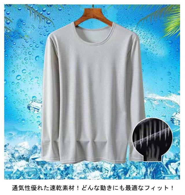 tシャツ 野球 ドライ 2枚セット!冷感インナー トップス 紫外線対策 メッシュ tシャツ 夏 吸汗速乾 涼しい 薄手 アイスシルク 長袖tシャツ Tシャツ 接触冷感 ストレッチ 丸首 メンズ 作業服 作業着 トレーニングウェア ゴルフ 長袖
