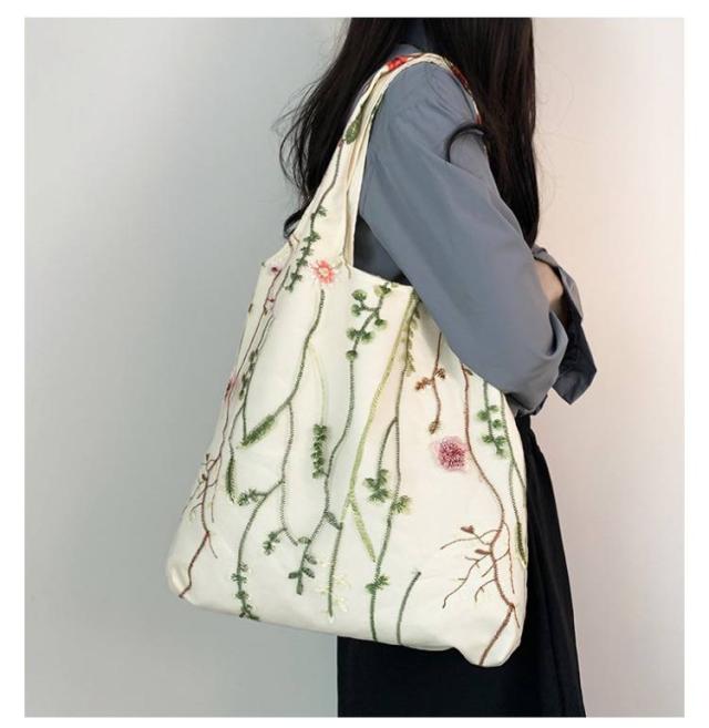 キャンバス レース ナチュラル ふんわり 刺繍 折り畳める 刺繍トートバッグ 刺繍 レース柄 2層 レース エコバッグ ECO A4サイズ対応 シンプル 上品 通学 通勤 買い物 通園 マザーバッグ トートバッグ
