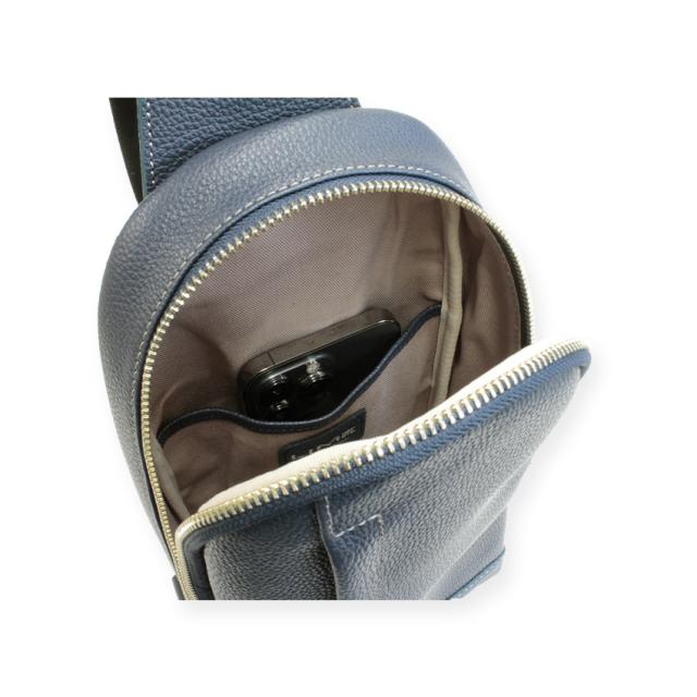 無駄のないスマートなデザインと軽さ、使いやすさにこだわった本革ボディーバッグ。