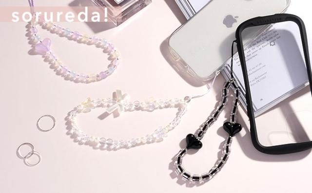 sorureda! ビーズストラップ【 スマホ用 ハンドストラップ 携帯ストラップ スマホ iphone 携帯 手首 ビーズ ハート リボン 蝶々 花 フラワー 落下防止 おしゃれ かわいい 大人 韓国 ファッション 平成 レトロ スマホケース 用ストラップ 】