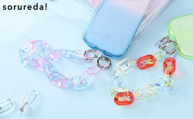sorureda! アクリルチェーンハンドストラップ【 スマホ用 ハンドストラップ ホルダーシート 付属 スマホ iphone 携帯 手首 チェーンストラップ 落下防止 おしゃれ かわいい クリアカラー 大人 韓国 ファッション 平成 レトロ スマホケース 用ストラップ 軽量 軽い 】