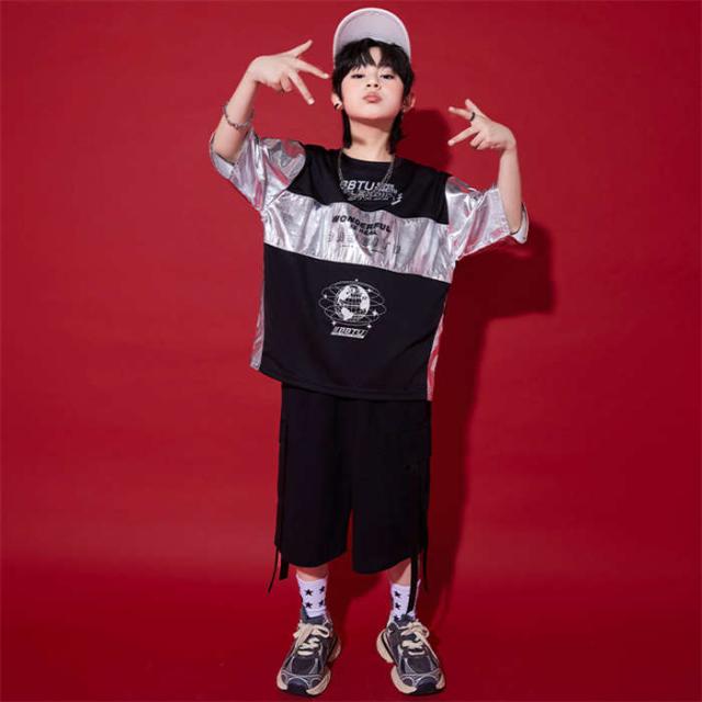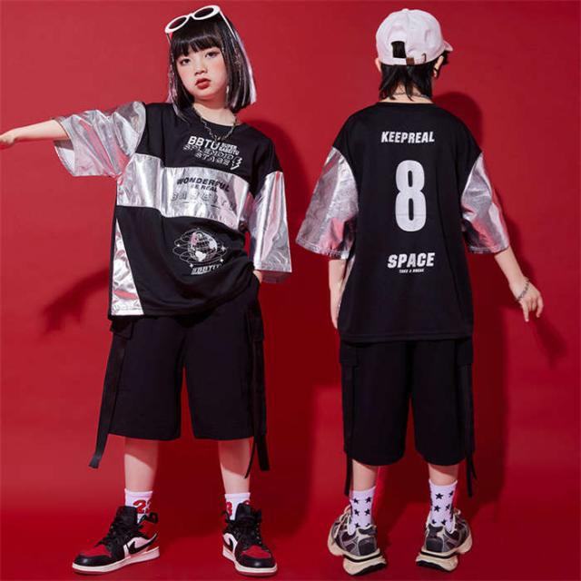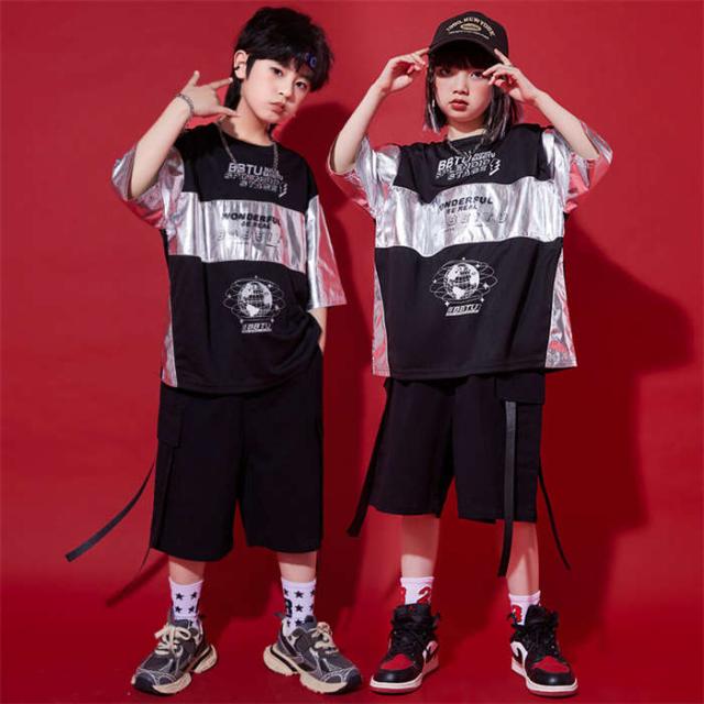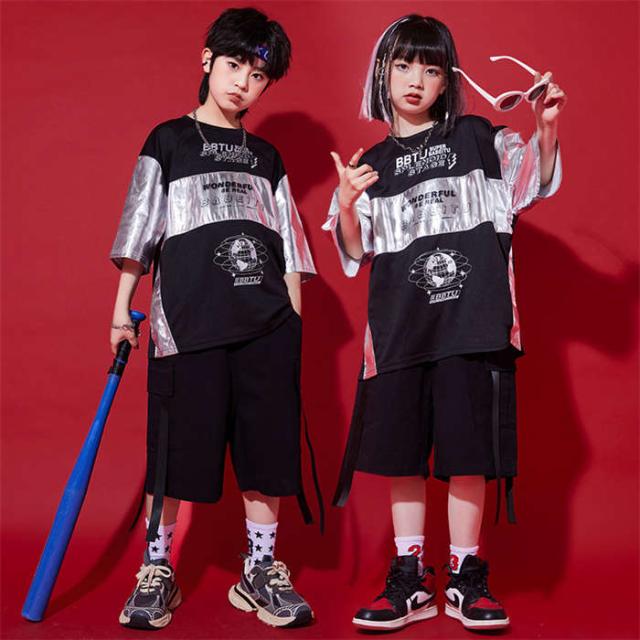 ダンスウェア 男女兼用 ダンス服 シルバー キッズ ダンス衣装 女の子 男の子 ヒップホップ HIPHOP jazz ジャズダンス ステージ衣装 団体服 演出服