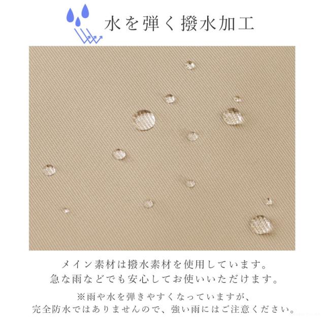 メイン素材は撥水素材を使用しています。急な雨などでも安心してお使いいただけます。