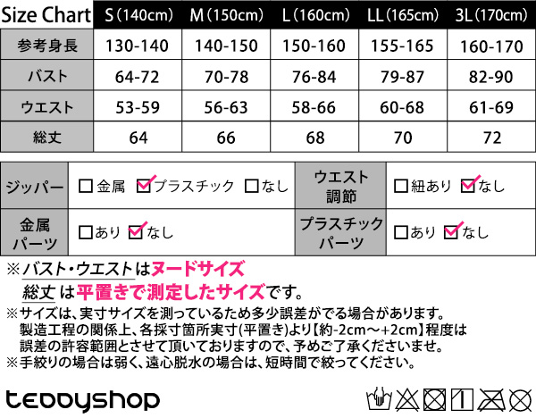 ※バスト・ウエストはヌードサイズ、総丈は平置きで測定したサイズです。