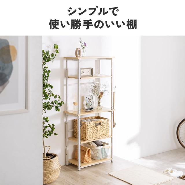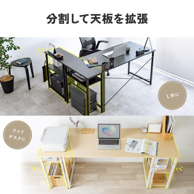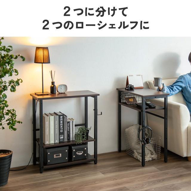 シェルフ 収納棚 オープンラック シェルフラック 上下分割 シンプルデスク フック付き 幅60cm 奥行き30cm ブラック ブラウン ライトブラウン ホワイト[100-DESKF052]