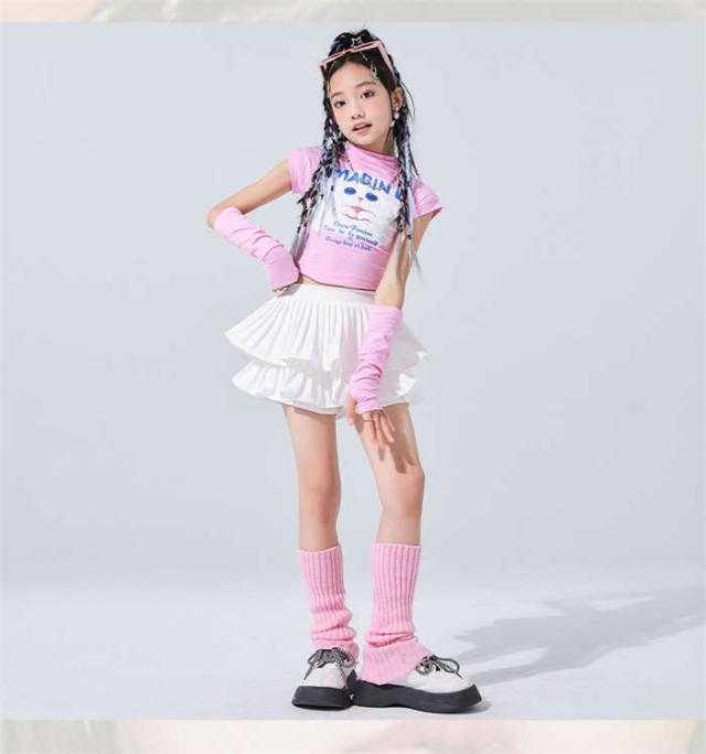 商品名:キッズ ダンス衣装 女の子 ダンス服 ダンスウェア チアガール ピンク ジャズダンス へそ出しねこ トップス スカートセットアップ ダンス着 ステージ 団体服 演出服 ヒップホップ hiphop K-pop ガールズ レッスン着 韓国風子供服 おしゃれ カッコイイ ダンス衣装 イベント衣装 ステージ衣装 踊り ダンス発表会 応援団 110cm 120cm 130cm 140cm 150cm 160cm 170cm 180cm