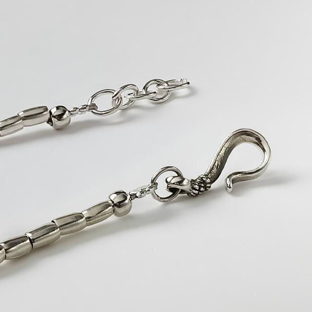 カレンシルバーのパイプビーズを使用した、シンプルデザインのブレスレットです。カレンシルバーはタイの山岳民族・カレン族が伝統的な手法で1つ1つ手作業で作り出した、銀純度95%以上のシルバーアクセサリーを指します。着けるだけでこなれ感が演出できる、カジュアル・アメカジコーデにオススメのアイテムです。